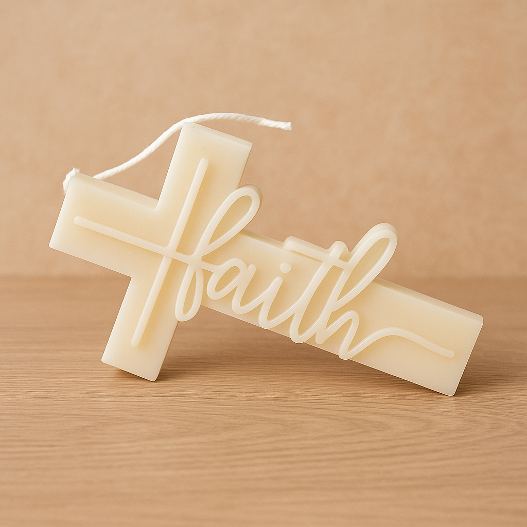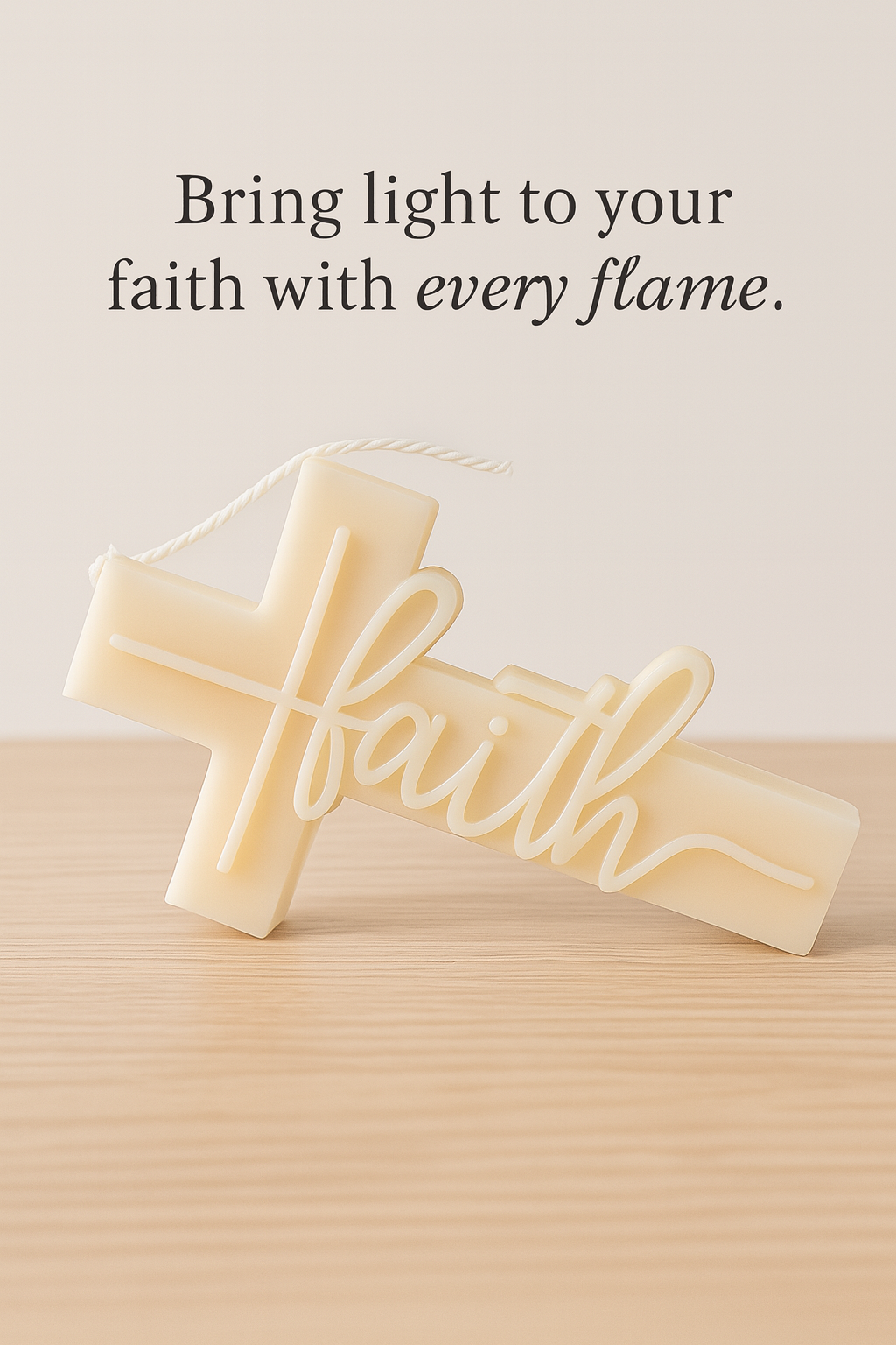 The White Faith Cross Candle is a beautiful way to bring light and inspiration into your home. With its elegant cross shape and engraved “Faith” design, this candle represents peace, hope, and spirituality. Crafted from premium paraffin wax, it offers both decorative charm and practical use. Place it in your living room, prayer corner, or church altar to create a serene atmosphere. Its neutral white color makes it a timeless addition to any décor style – from modern to traditional. This candle also makes a meaningful gift for loved ones during special religious occasions such as baptisms, confirmations, christenings, Easter, Christmas, or memorial services. Whether displayed or lit, the White Faith Cross Candle serves as a gentle reminder of faith in everyday life.
